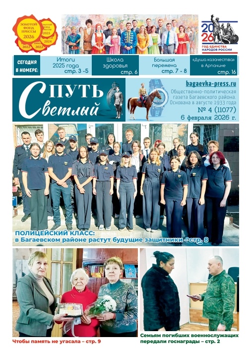 Не забывайте: подписка на газету «Светлый путь» для первого полугодия 2026 года продолжается. Оформить подписку можно через Почту России, а также в офисе ООО «Редакция газеты «Светлый путь» по адресу: ст. Багаевская, ул. Демьяна Бедного 20А. Звоните по телефону 8/863-57/33-4-80 или отправляйте заявку на электронную почту conon65@mail.ru.