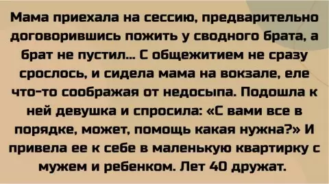 Каждая из этих историй обогащает представление о дружбе, показывая, что настоящие связи и поддержка могут возникнуть в самые неожиданные моменты жизни. Теперь остается лишь подумать, какие воспоминания о друзьях греют душу вам через годы.