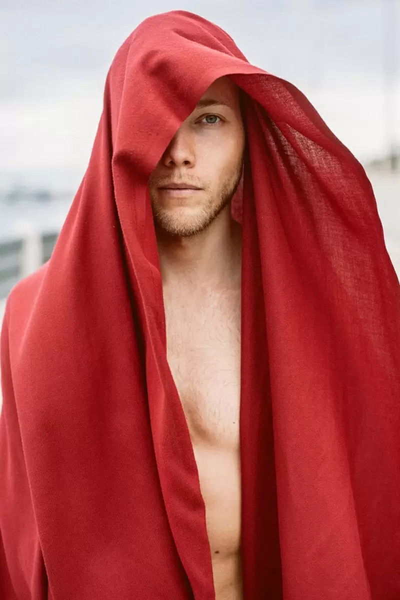 Яркий красный шарф, затерянный в рюкзаке, стал настоящим акцентом этой фотосессии, которое выделяло не только модель, но и всю атмосферу вокруг. На фоне черно-белых кадров, которые в последнее время стали особенно привлекательными, такая вспышка цвета привлекла внимание и сделала каждую фотографию ещё более живой и насыщенной.