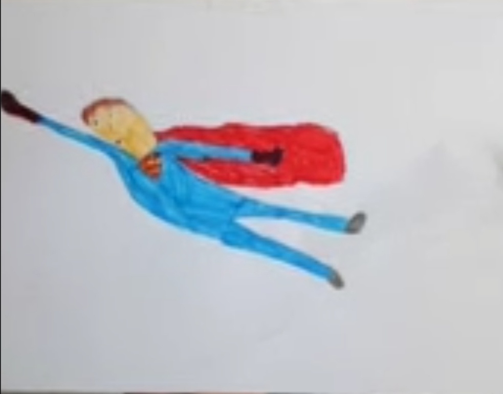 В ответ психолог предложил ему вспомнить о своей внутренней силе и образе, который помогает в этом. Супермен визуализировал и нарисовал самого себя. На бумаге он изобразил свою эмблему, плащ, который помогает летать и фантазировать, а также костюм, который напоминал о его мощи и способности справляться с любыми трудностями.