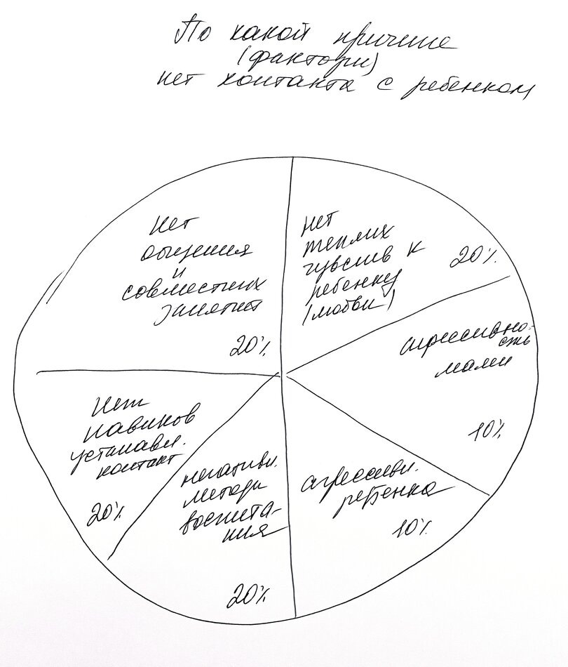 Рассмотрим один из свежих примеров применения данной техники. В ходе беседы с клиенткой, столкнувшейся с трудностями в воспитании ребенка, были выявлены три ключевых фактора, влияющие на конфликты: недостаток родительских навыков, особенности развития ребенка и отсутствие совместного времени.