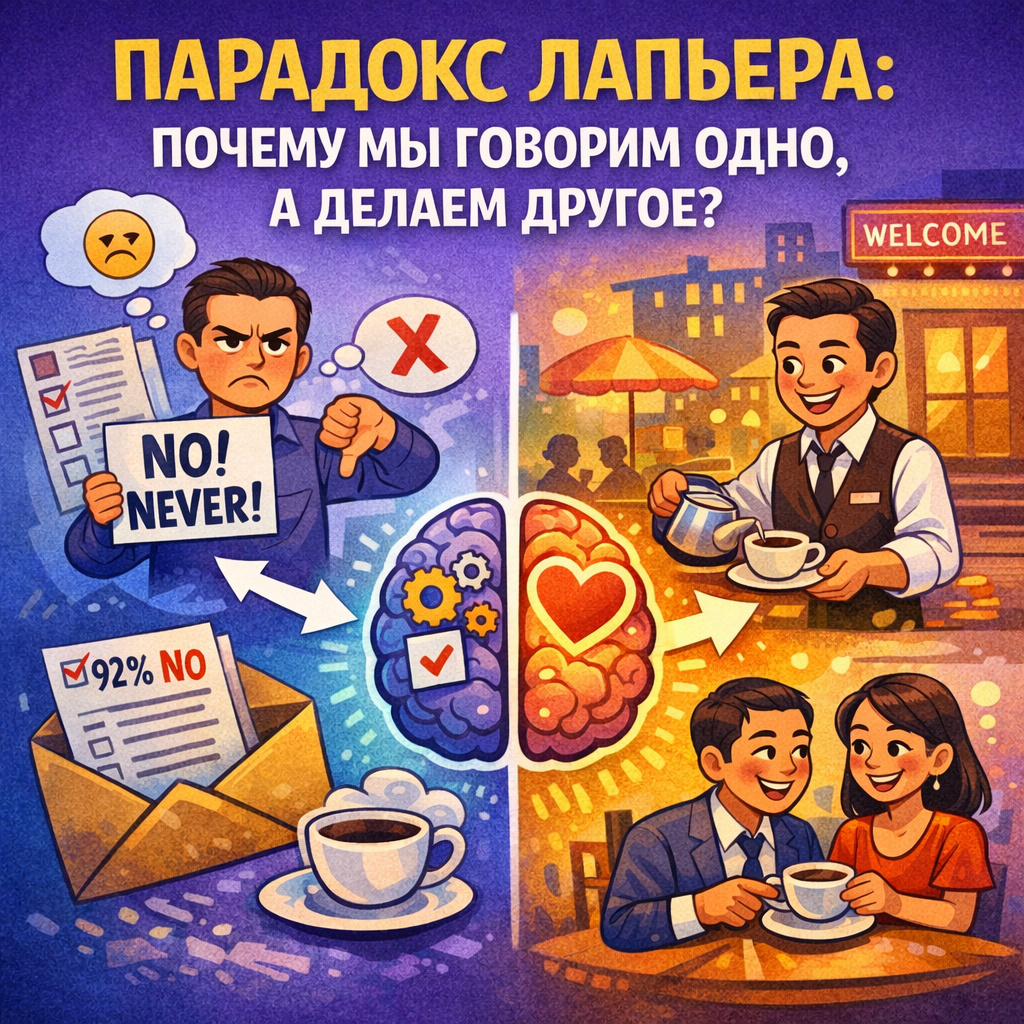 Этот феномен называется парадоксом Лапьера. Психология подсказывает, что у нас есть внутренние противоречия, и это вполне нормальная часть нашего мышления.