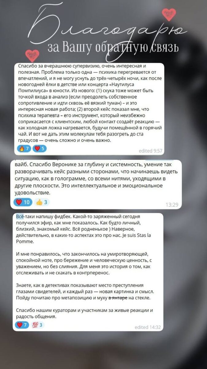 Эти мысли привели к созданию программы «Востребованный психолог», так как наблюдения показывают одну и ту же картину. Когда специалисты начинают углубленно анализировать свою работу и внимательно следить за динамикой взаимодействия с клиентом, их практика начинает меняться. Это приводит к большей ясности, уверенности и осознанности.